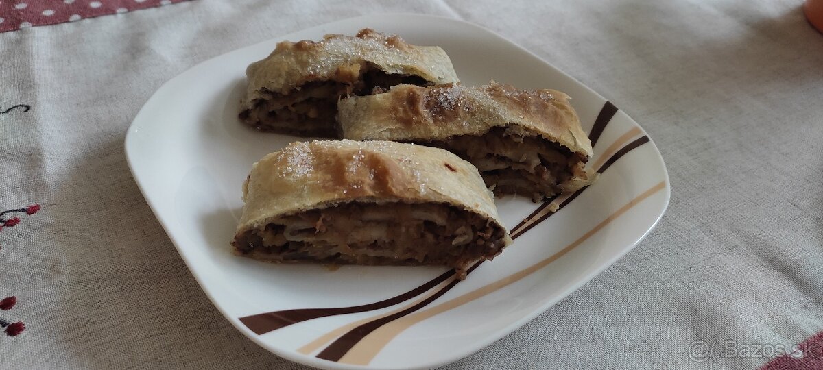 Veľmi chutné makové alebo jablkové štrúdle robené z domáceho cesta. Výborné v letom aj zimnom období. Ponúkam vždy 3 kusy cesta. Objednavka vopred min. 3 dni. Cena spolu 28 Eur, jeden kus vychadza na 0,85 Eur