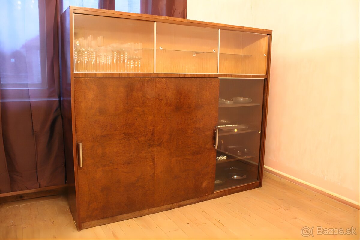 ponúkam na predaj veľmi vzácny funkcionalistický sekretár,navrhnutý Jindřichom Halabalom pre UP závody Brno v tridsiatych rokoch.dýha je orechová korenica,sklá sú lemované chrómovanými lištami.dvierka sú posuvné a poskytujú možnosť využívať spodnú časť viacerými spôsobmi.stav viď foto.šírka je 200 cm,výška 172 cm a hĺbka 45 cm.sekretár je veľmi ťažký,nutné osobné prevzatie a naloženie v okrese Topoľčany.na prípadné dotazy rád zodpoviem.kontaktujte ma prosím cez formulár,číslo je vymyslené.ďakujem