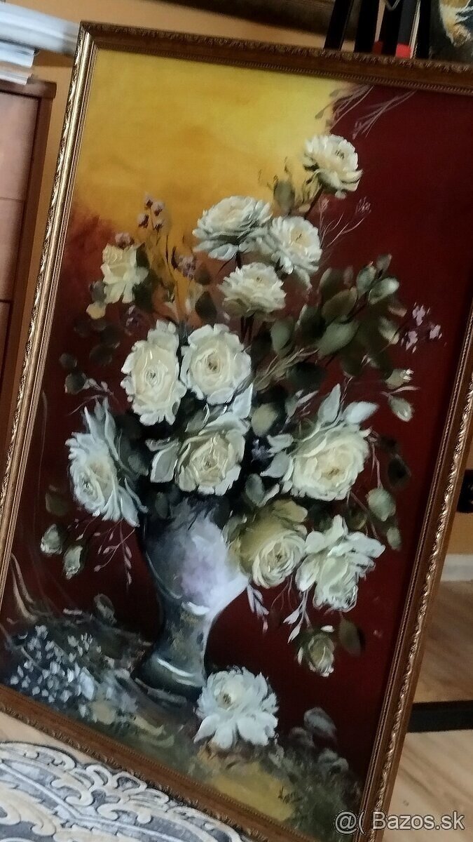 Veľká zarámovaná olejomaľba ruží