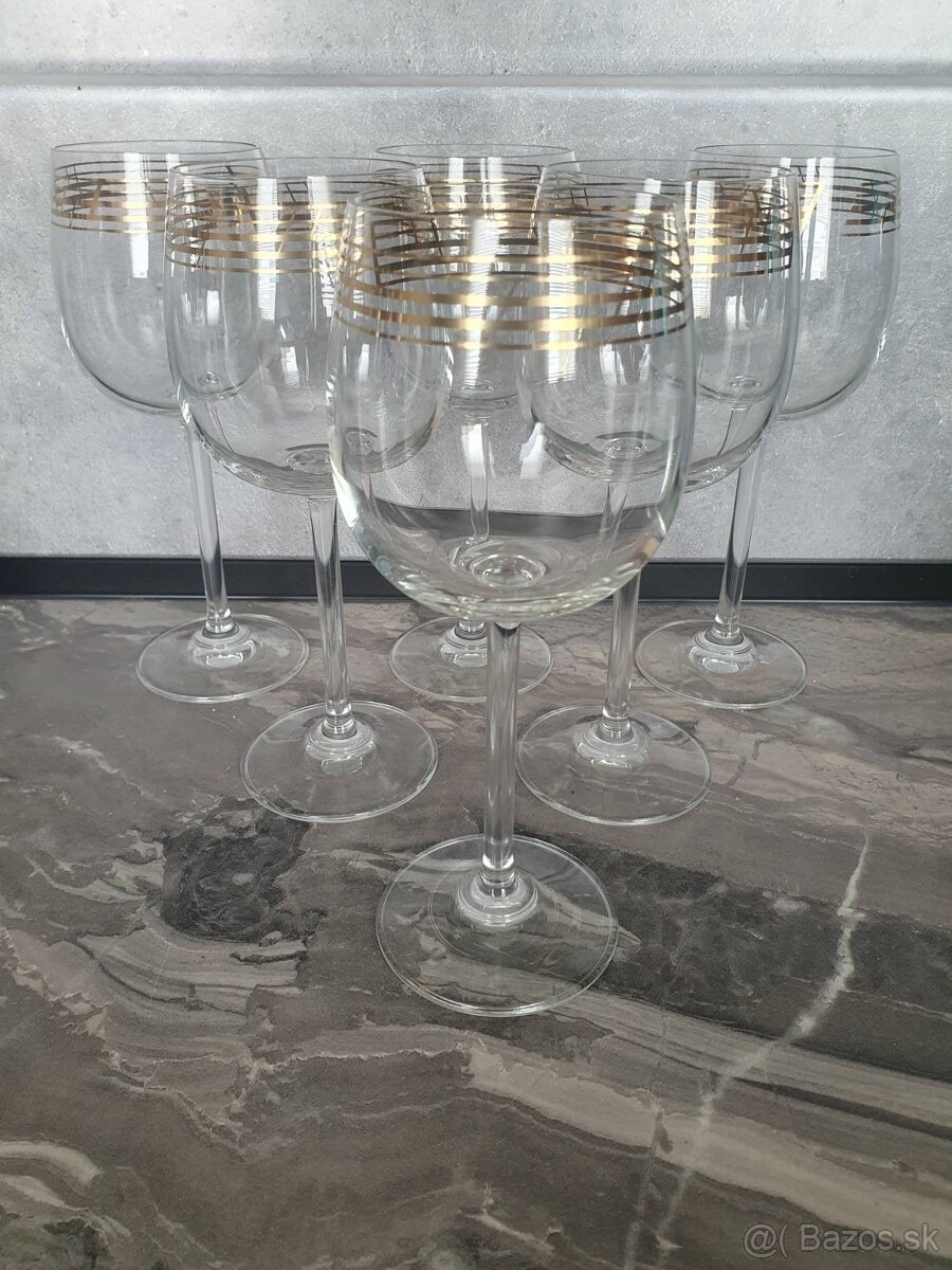 Sklenené poháre na stopke - [21.12. 2025]Dobrý deň, ponúkam na predaj sadu 6 pohárov na stopke. Poháre majú zlatý pásik na vrchu, ktorý je viditeľne ošúchaný. Inak sú poháre v dobrom stave.