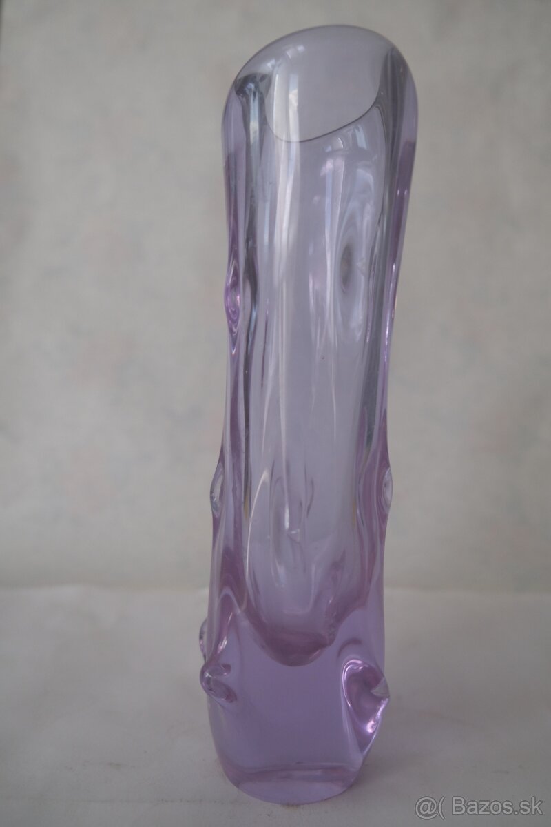 Hutne sklo CSSR Josef Hospodka - [14.12. 2025]Nápadne vyfarbená zberatelská sklenená váza, design Josef Hospodka 60. roky 20. storočia. Cena zohľadňuje drobné oťuky na spodnom leme. Dovoz možný po dohode od Bratislavy po Poprad