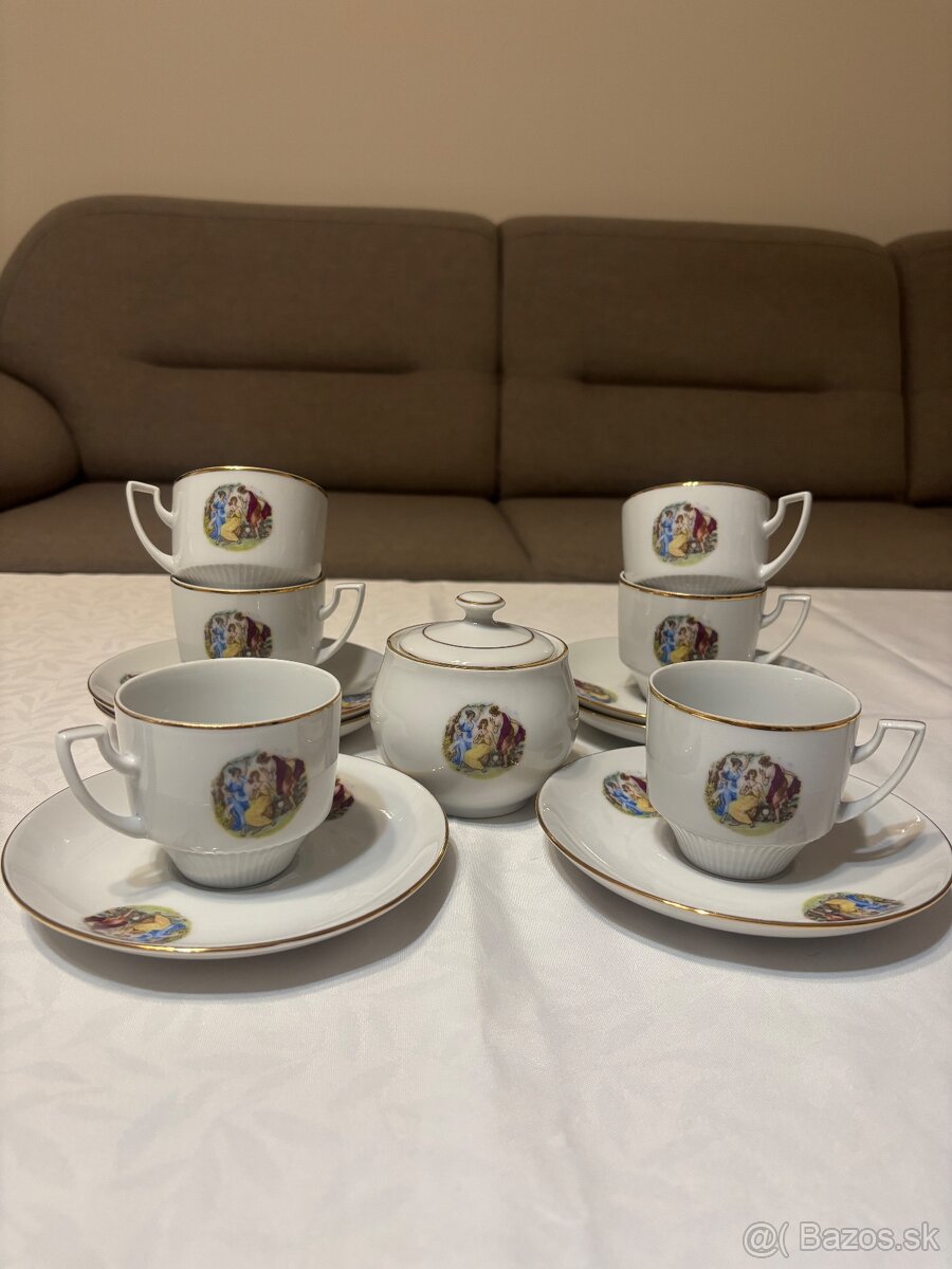 Súprava na kávu pre 6 osôb + cukornička. Pekný, používaný stav bez poskodenia. 29€
