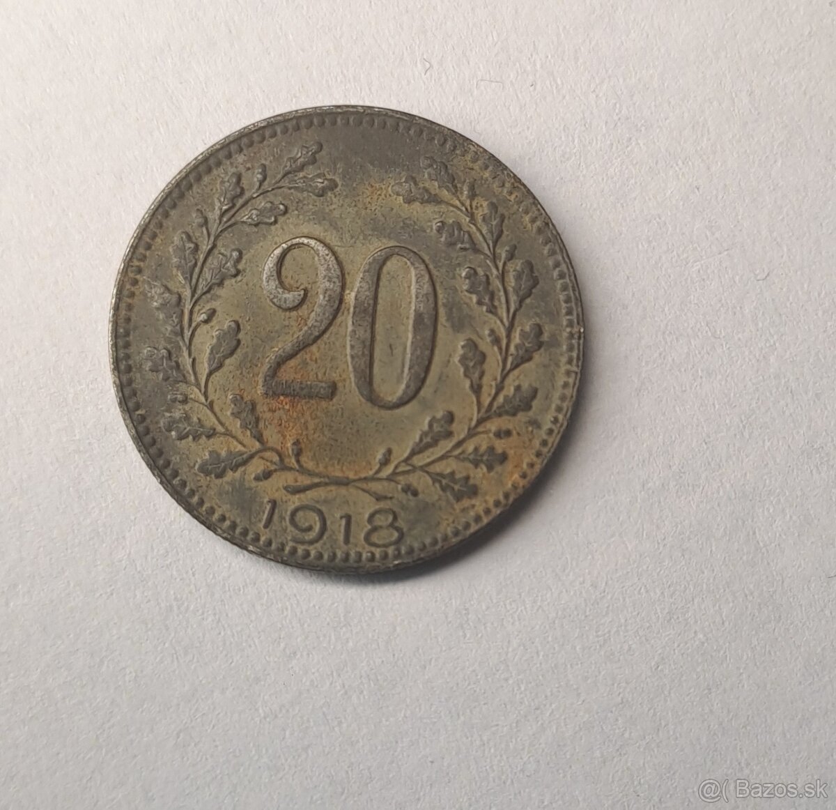Predám 20 heller ročníky 1917,16,18 kus/1,70€ + poštovné.