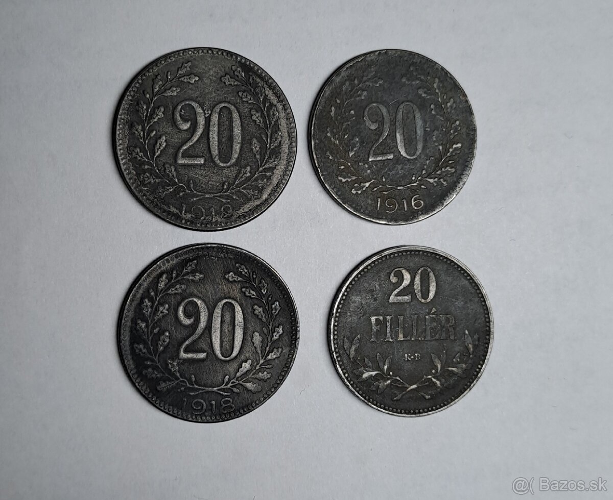4.Rakúsko Uhorsko 20 Heller r.1916 6ks, r.1917 3ks, r.1918 3eur