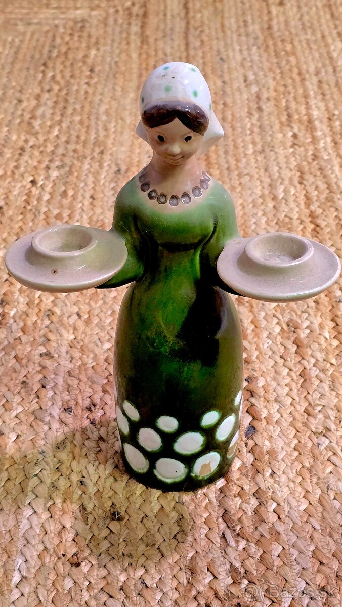 Keramická figúrka – dievča so svietnikmi (retro)