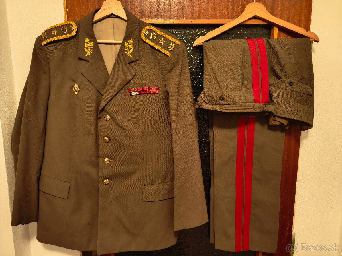 Originálna generálska uniforma,samozrejme od skladovania má dierky od molí ale nič čo by v zbierke na výstavke vadilo . Vysoká škola (odznak) je strieborný s puncom,kľudne odfotím . Stužky sú tiež v super stave.