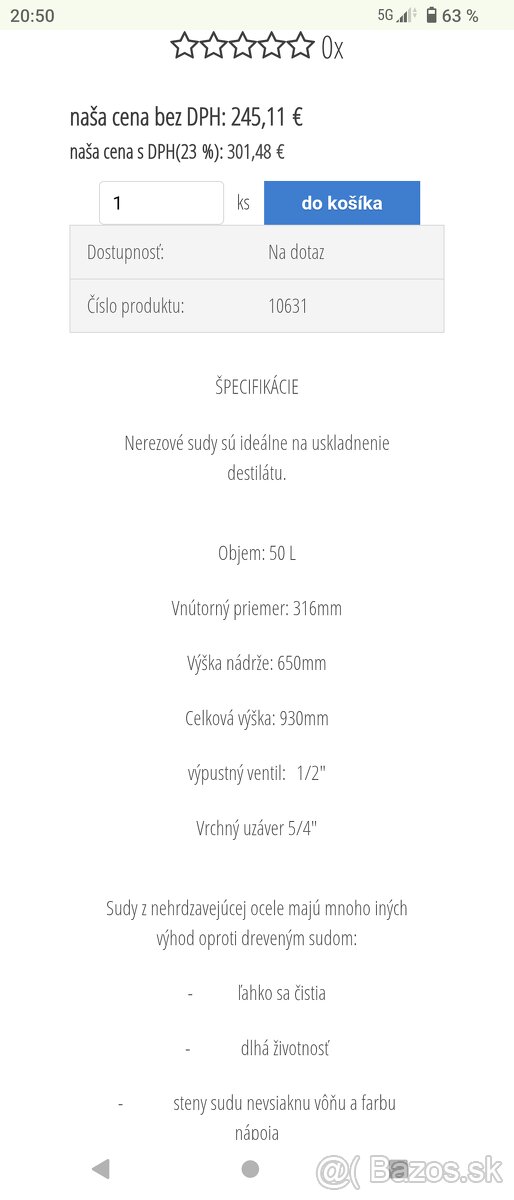 Predám úplne nový nepoužitý nerezový sud Zottel inox ventili 50l z plávajúcim vekom Air komplet na víno.Novy 300 € ,moja cena 170€ ,osobný odber
