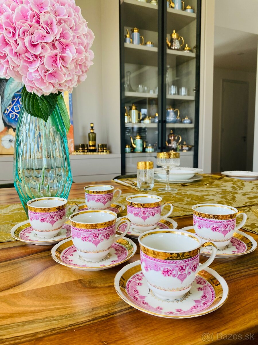 Ponúkam na predaj tieto elegantné ružovo-zlaté šálky s podšálkami, pôvodom z československej výroby.