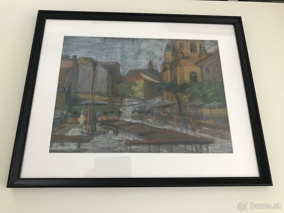 Obraz -Stara Bratislava, pastel, rozmer v rame 40x50