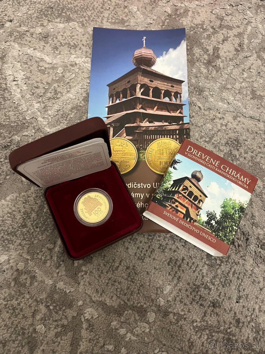 Predám zlatú zberateľskú mincu z roku 2010 100€ Drevené chrámy v 100 % stave, v náklade 6 640 ks, spolu s informačným letákom - všetko čo k minci patrí. Platba prevodom na účet, alebo osobne v Bratislave v starom meste. Mám aj iné zlaté zberateľské mince.