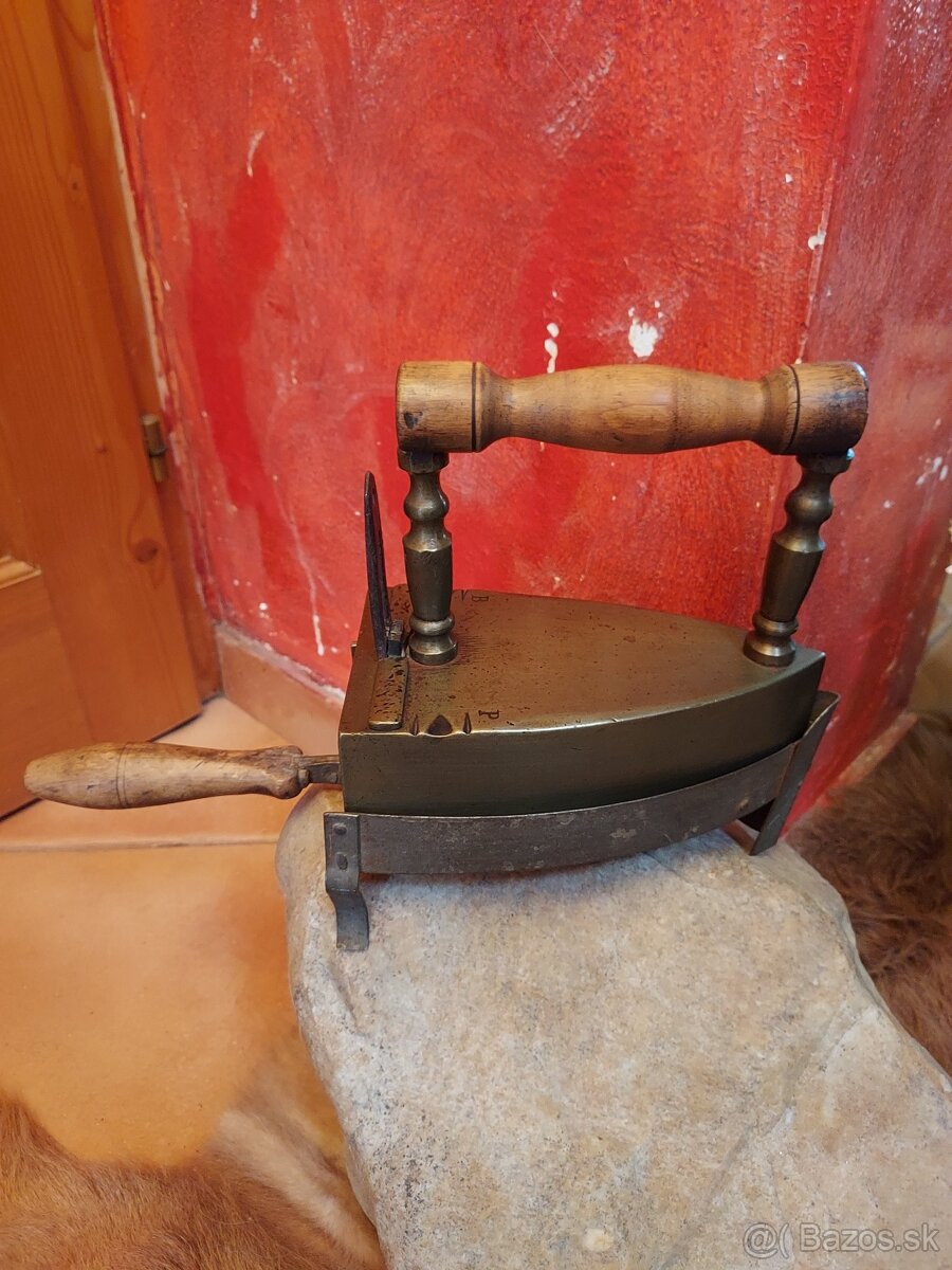 PREDÁM VEĽMI STARÚ ŠĽACHTICKÚ MOSADZNÚ ŽEHLIČKU V PERFEKTNOM STAVE,S PODLOŽKOU A ZAHRIEVACÍM TELESOM VNÚTRI.ROK okolo 1830.