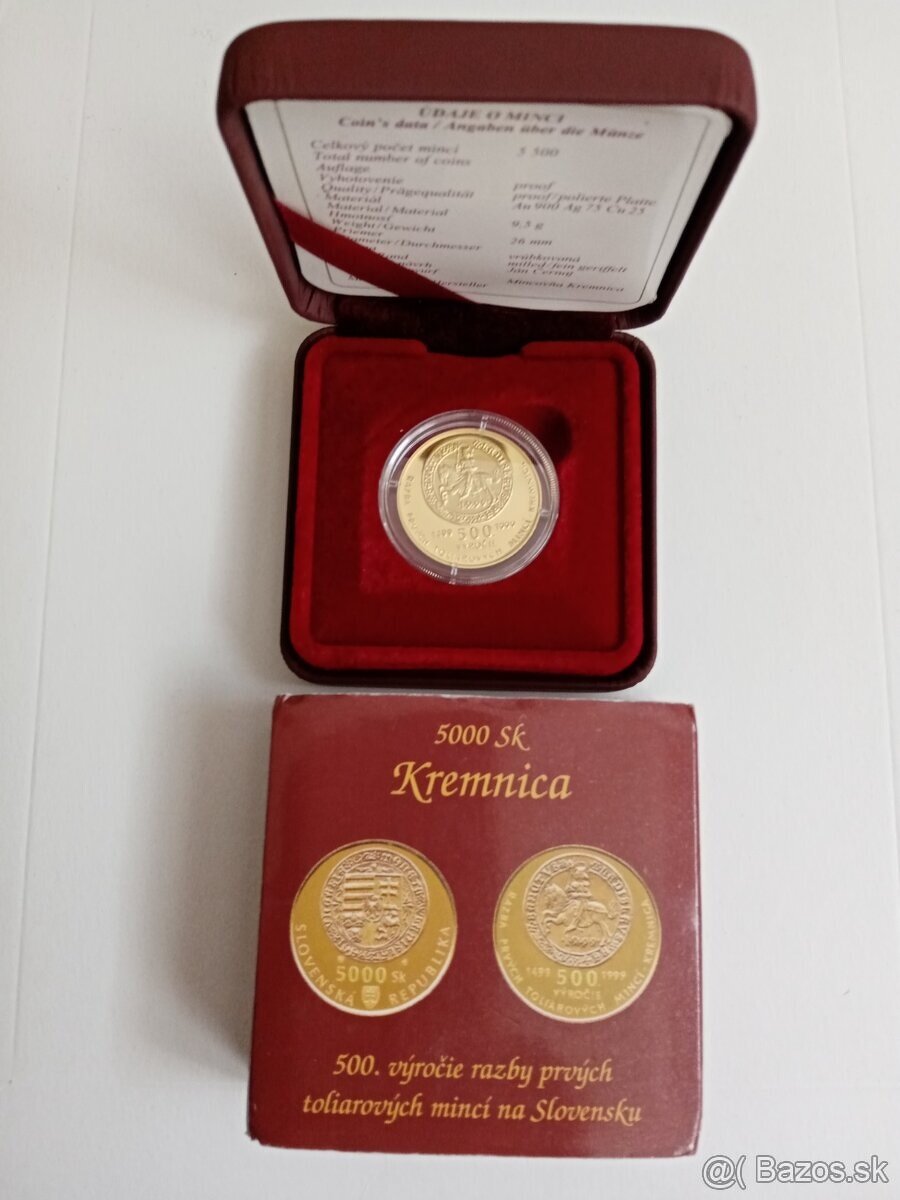 Predám zlatú 100.eur mincu Kremnické toliare.