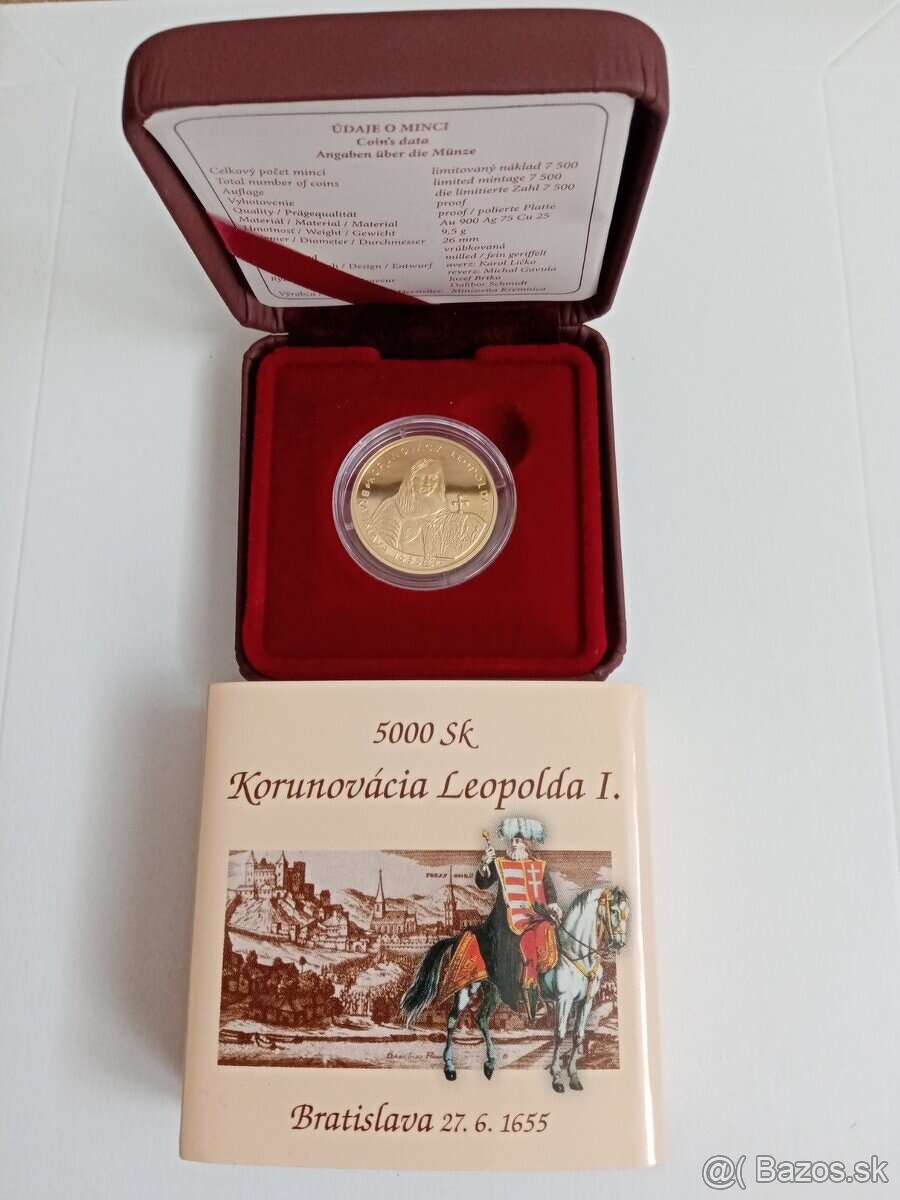 Predám zlatú mincu 5000.sk korunovácie Leopolda I.