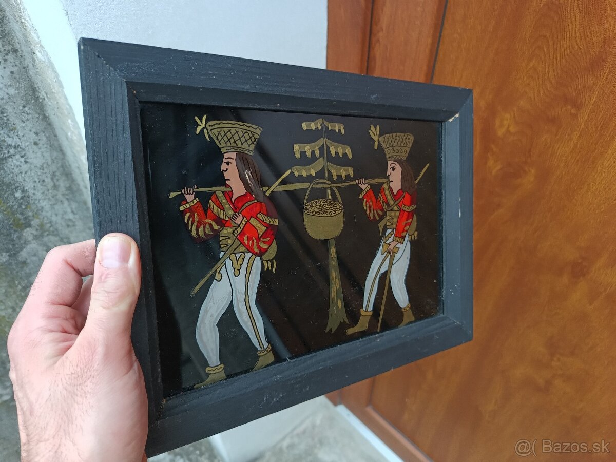 podmaľba na skle, starý ľudový motív, rozmer obrazu 35x26cm