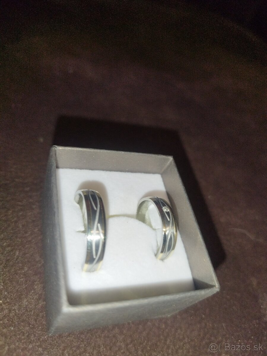 Predám tieto úplne nové svadobné obrúčky z chirurgickej ocele v kombinácii zo zlatom.Prstienok pre nevestu je zdobený briliantom.