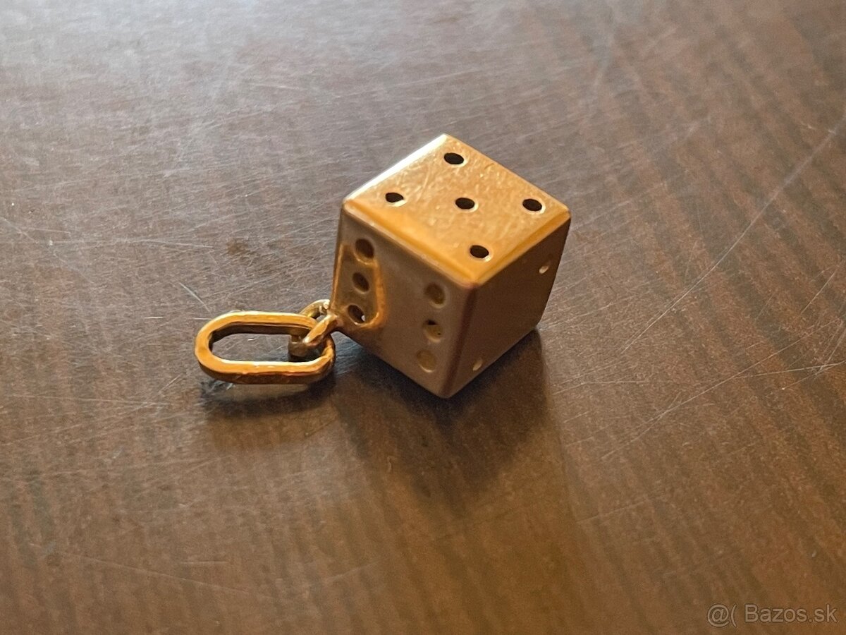 starozitny zlaty prívesok -hracia kocka
