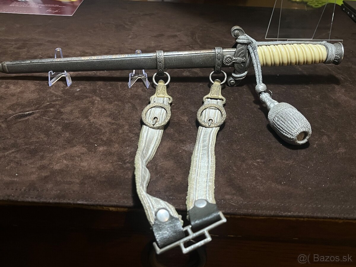 Zdravím,predám nálezový kordík pre dôstojníkov Wehrmachtu, výrobca je veľmi známy F.W.Höller Solingen, čepeľ má zachované povchrové niklovanie na 95 %. Pochva má pri stredovej časti jemne odlúpenú úpravu.Závesník je vzácny DeLuxe značený výrobcom Assmann! Portepee originál v dobre zachovanom stave.Všetky poškodenia sú nafotené. Viac fotiek nafotím na požiadanie. Posielam aj na dobierku.