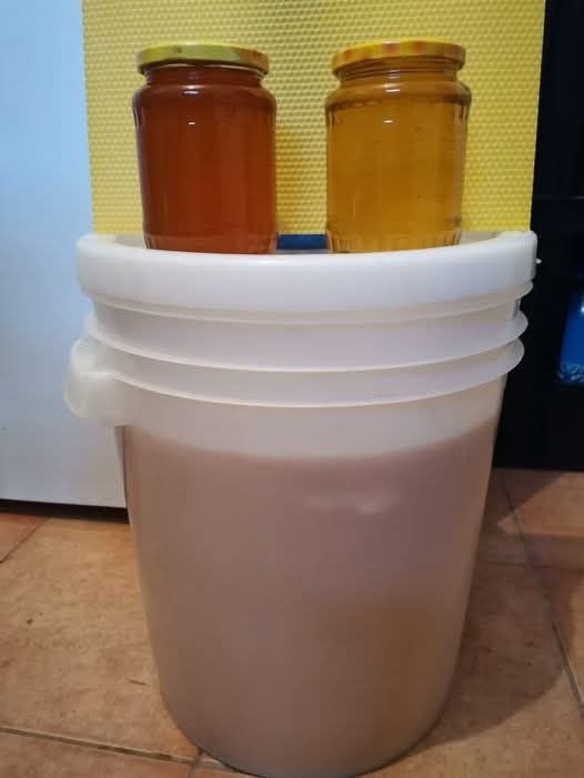 predám včelí med - [17.11. 2025]Predám slnečnicový med (na obr. vlavo) v 40kg vedrách. Cena 3,80€ Naflaškovaný + 0,65€ Pid: 234/2024-420-3