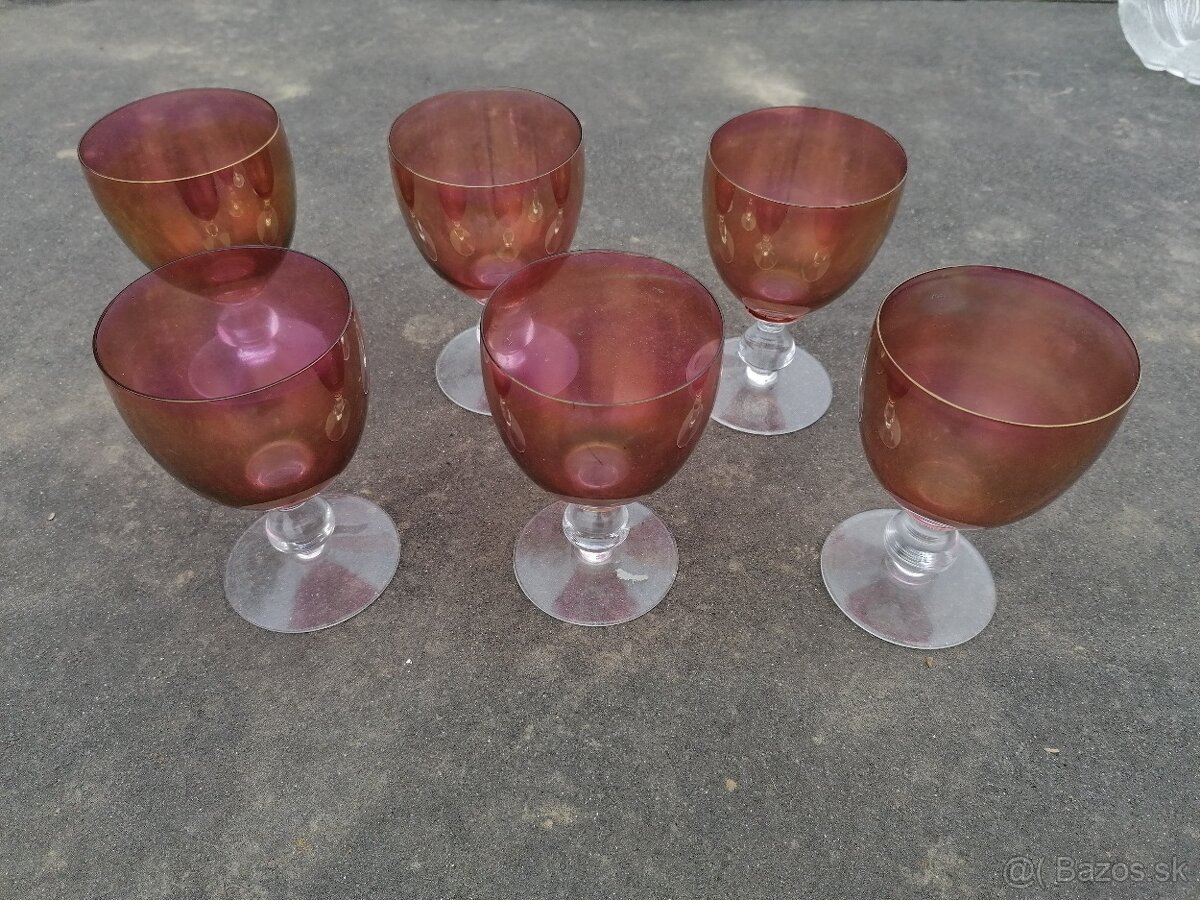 Predám sklenené poháre na víno z brúseného brusnicového skla, celá súprava 6 kusov. Výška pohárov 13cm. Cenu ponúknite