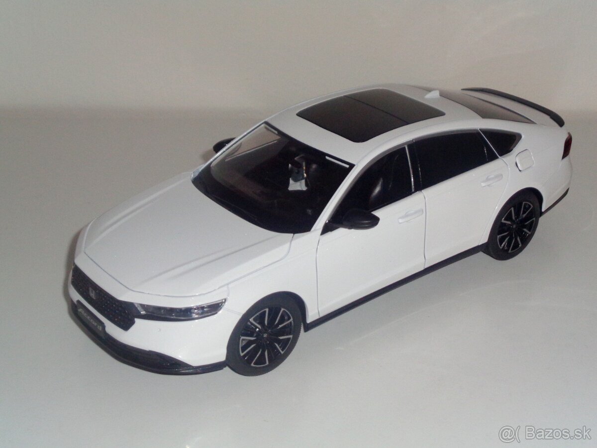 Predám model Honda Accord ročník 2023, mierka 1/18, výrobca Heimanba. Autíčko má otváracie dvere, kapotu, kufor, veko nádrže, posuvné predné sedadlá, sklopné zrkadlá. Svietia predné a zadné svetlá a prístrojovka, po stlačení volantu trúbi. Autíčko je nové, bez krabice.