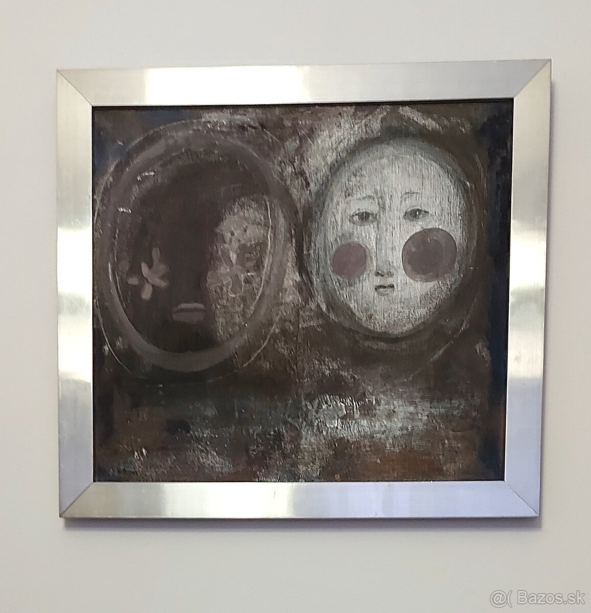 Akryl na drevenej doske. Rozmery obrazu s rámom: 53,5cm x 48,5 cm. Výborný stav. Cena 400 Euro, dohoda možná.