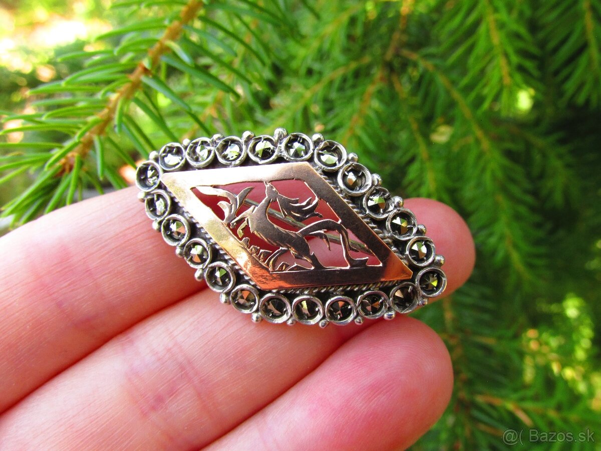 Strieborná brošňa so zlatom a markazitmi, Ag 925