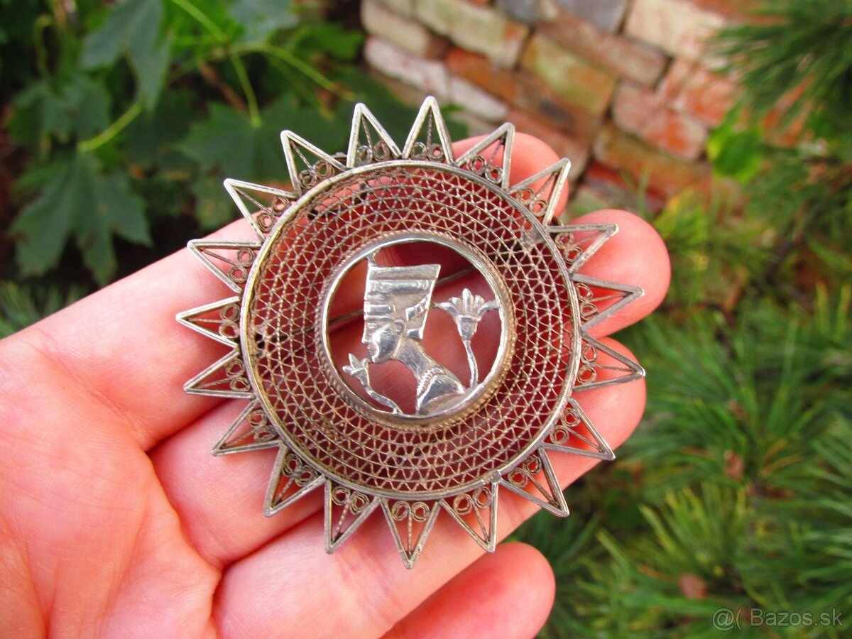 Stará strieborná filigránová brošňa Egypt, Ag 800