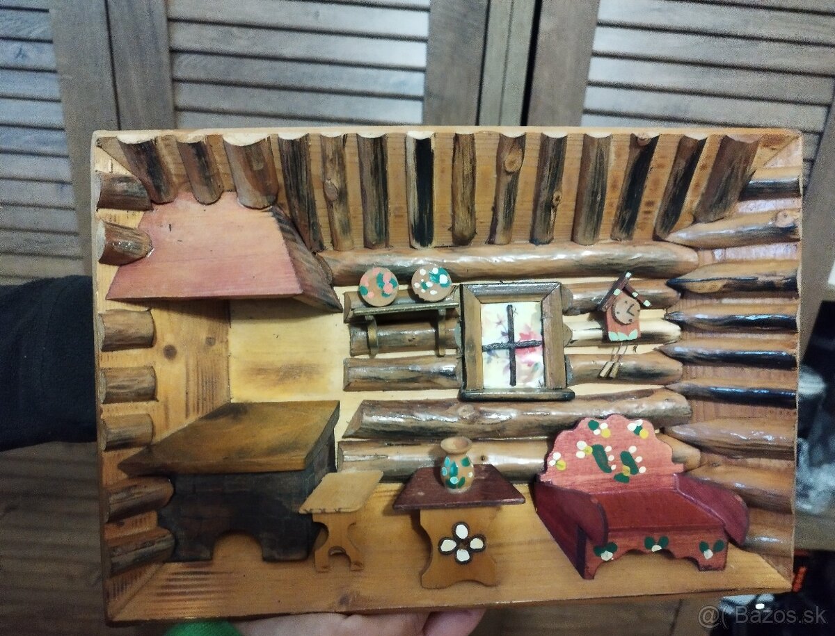 Drevený obraz slovenská dedina - [21.12. 2025]Predám ručne vyrezávaný drevený obraz s motívom tradičnej slovenskej dediny. Dekorácia zobrazuje chalupy, prírodu a postavu ženy pri práci, vyrezanú s veľkou precíznosťou a citom pre detail.