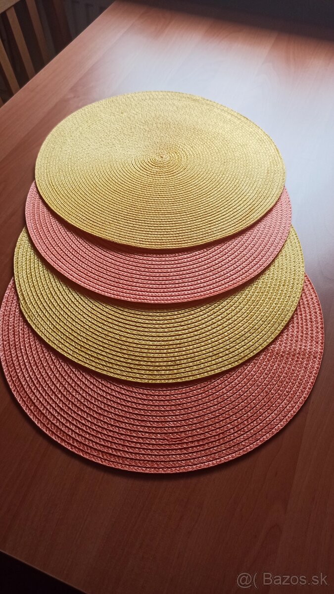 Umývateľné, priemer 38 cm, farba žltá a oranžová. Sada 6 kusov - cena za sadu 8 €.