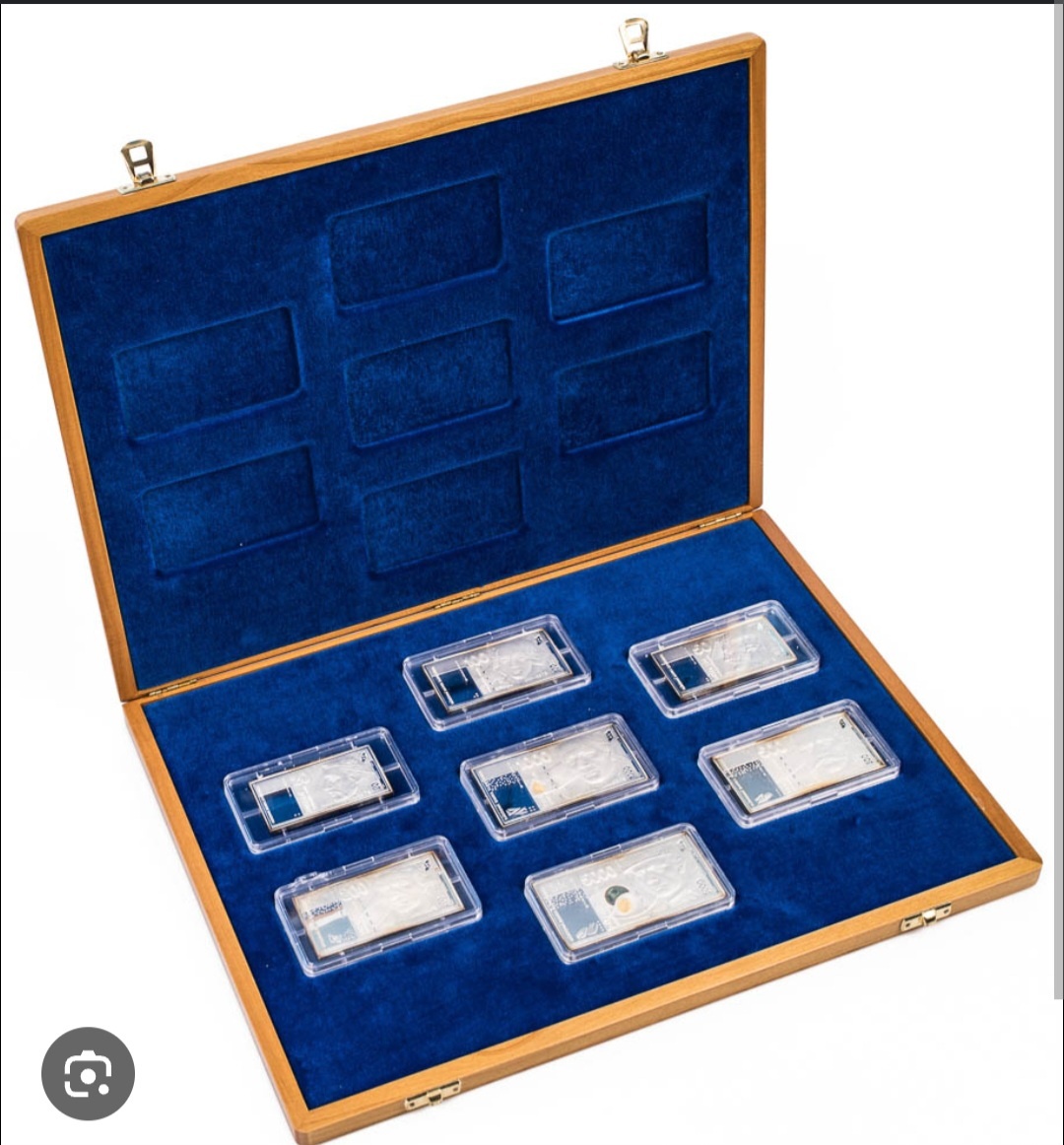 s motívmi slovenských bankoviek (7 kusov - 20 SK, 50 SK, 100 SK , 200 SK, 500 SK, 1000 SK, 5000 SK),. Mince sú v kvalite PROOF a uložené v pôvodnej drevenej kazete.