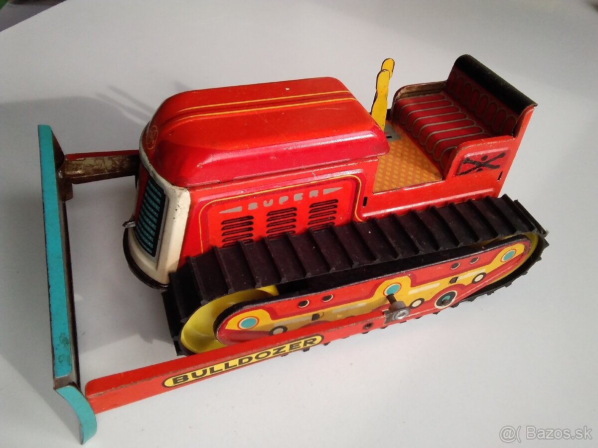 Predám starý buldozér na kľúčik. Plechová hračka.