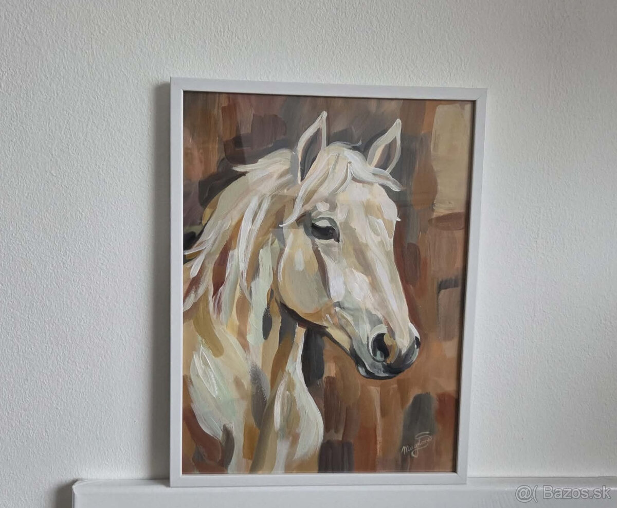Výnimočný darček na Vianoce? Originál akryl na akvarelovom papieri, rámik rozmer 30x40cm, cena 50€, motív : Kôň. Jedinečný motív, ktorý oživí Váš interiér. Ideálne osobný odber v Žiline, alebo po dohode je možne zaslať aj na dobierku.