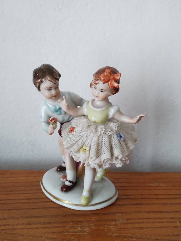 Starozitna nemecka porcelanova soska chlapec a dievca s cipkovanou suknou znacena Unterweissbach vysoka 12cm vo vitrinovom stave. Pozri aj dalsie moje inzeraty. Bratislava