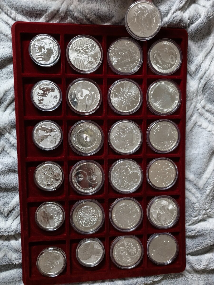 Ponúkam 18x 1oz investičné strieborné mince ( obsahuje aj celú sériu Equlibrium ) 7x 0,5 Oz investičné strieborné mince ( lunárny kalendár ) všetko v top stave len jedna 1oz minca mierna oxidacia. Len osobne v Košiciach!! Cenu ponúknite mailom ,alebo SMS, najlepšiej ponuke sa ozvem , nepýtajte sa na cenu . Predaj mi nesúri