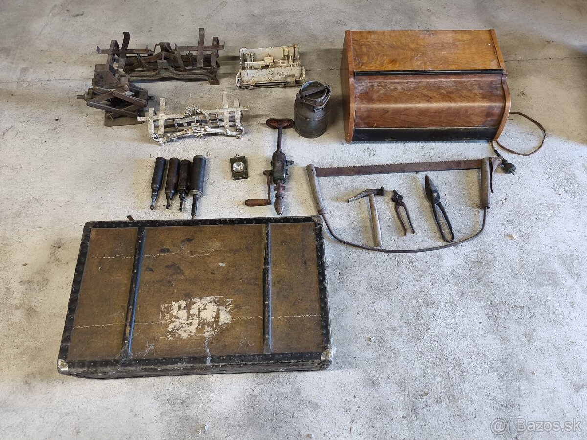 Staré váhy, kufor ,gramofón....