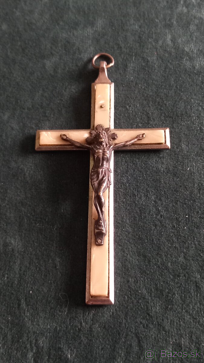 Náboženský predmet - [30.10. 2025]Starý kovový krucifix s podstavcom, pravdepodobne z konca 19. až začiatku 20. storočia, pochádzajúci zo strednej Európy – oblasti dnešného Česka, Slovenska či Rakúska. Vyrobený zo zliatiny mäkkého kovu, bežnej pre obdobie Rakúsko-Uhorska. Nesie nápis INRI a dekoratívne zakončenia v štýle neskorého b ...