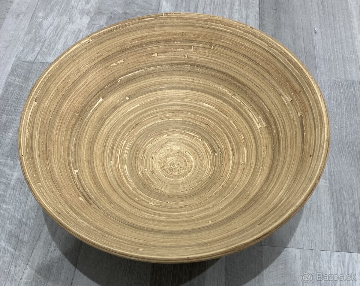 Ponúkam nepoužívanú misu z bambusu o priemere 30 cm a výške 10 cm. Misa je vhdoná na dekoračné využitie, ale ja na pracktické uskladnenie orieškov alebo ovocia v domácnosti.