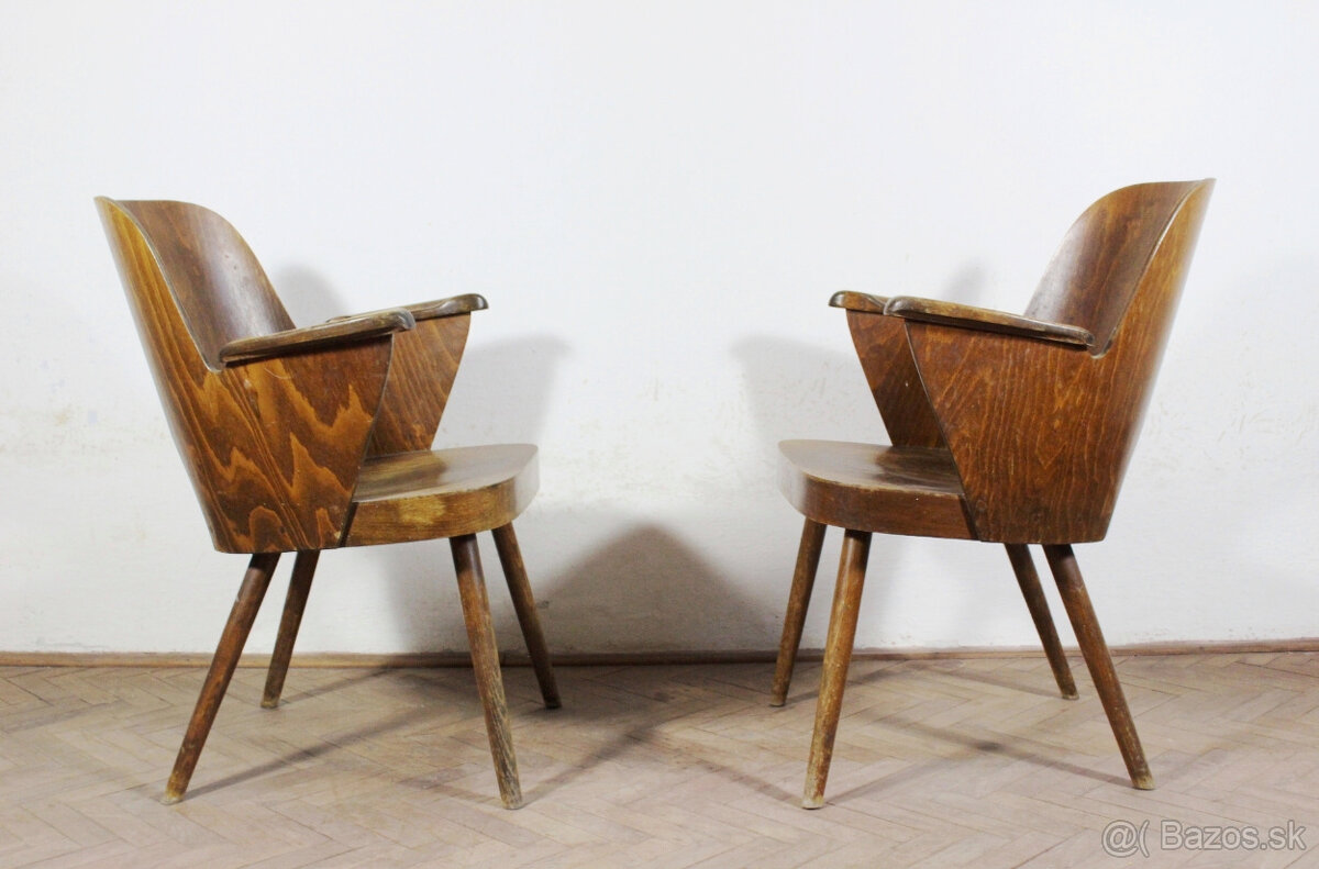 ponúkam na predaj retro polokreslá,navrhnuté architektom Oswaldom Haerdtlom v roku 1955 pre firmu TON.predná výška sedenia je 41,5 cm.polokreslá sú určené na renováciu,stav viď foto.osobné prevzatie v okrese Topoľčany,SR.na prípadné dotazy rád zodpoviem.kontaktujte ma prosím cez formulár,číslo je vymyslené.ďakujem