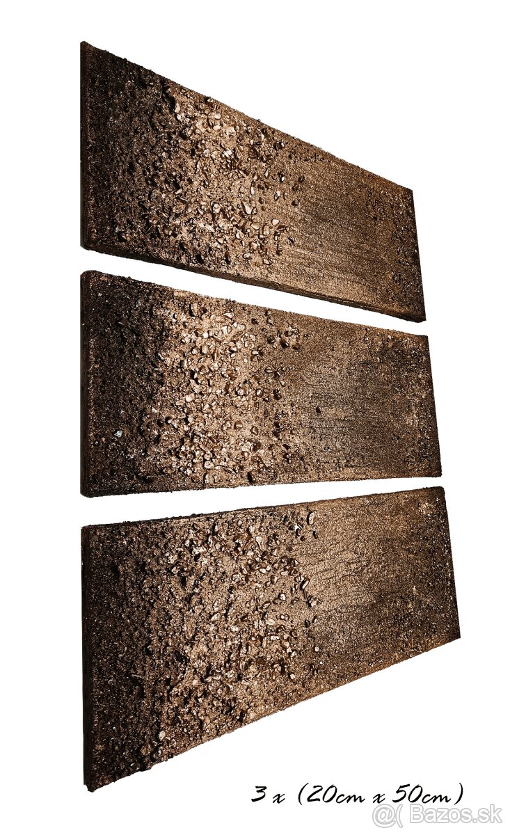 Ponúkam na predaj ručne robený obraz v bronzovo zlatej farbe, zložený z 3 ks o veľkosti 20cm x 50cm (celkový rozmer - 60cm x50 cm). Séria v zložení 3 nadväzujúcich obrazov ponúka svoju jedinečnosť pre tých, ktorí nemajú radi sériovú výrobu. Obraz je vyrobený prevažne zo stavebných materiálov, ktoré dodávajú obrazu jeho kvalitu. V prípade záujmu preferujem osobný odber. Po dohode je možné obraz doručiť osobne aj do Michaloviec, Humenného alebo do Sniny.