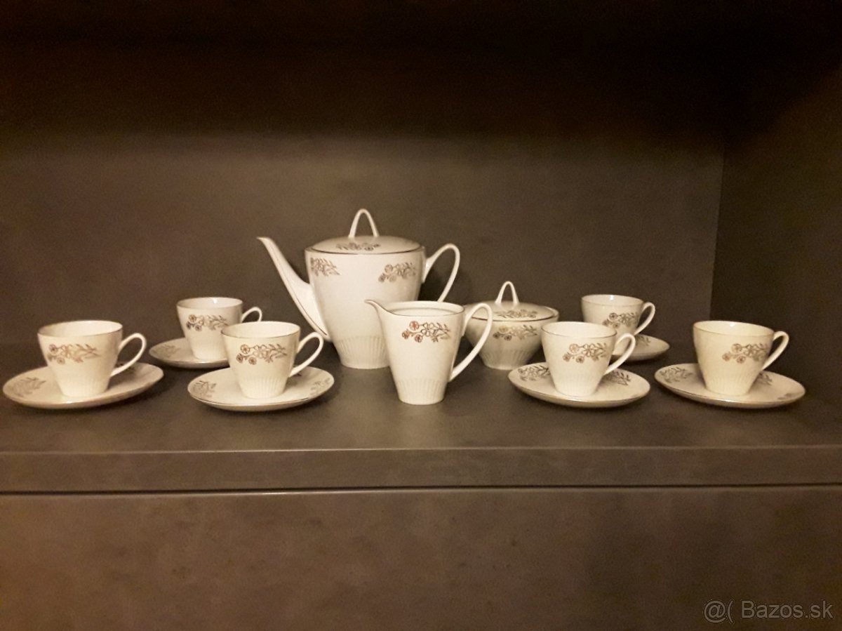 kavovy servis - porcelan so zlatým okrajom a kvetmi