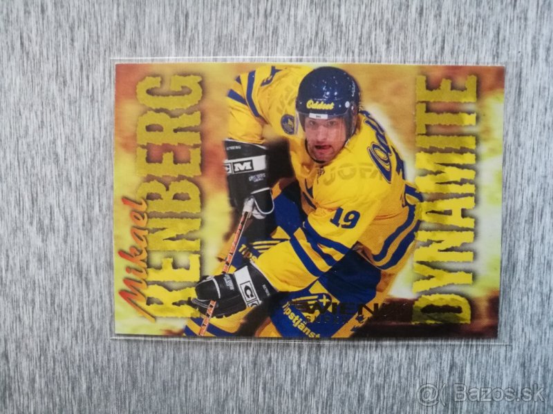 Predám inzertnú hokejovú kartu / hokejovú kartičku zo série Swedish Semic Wien 96: SUPER CHASE CARD: Mikael Renberg Dnamite / Saku Koivu Hurricane ( v balíku 1:480)