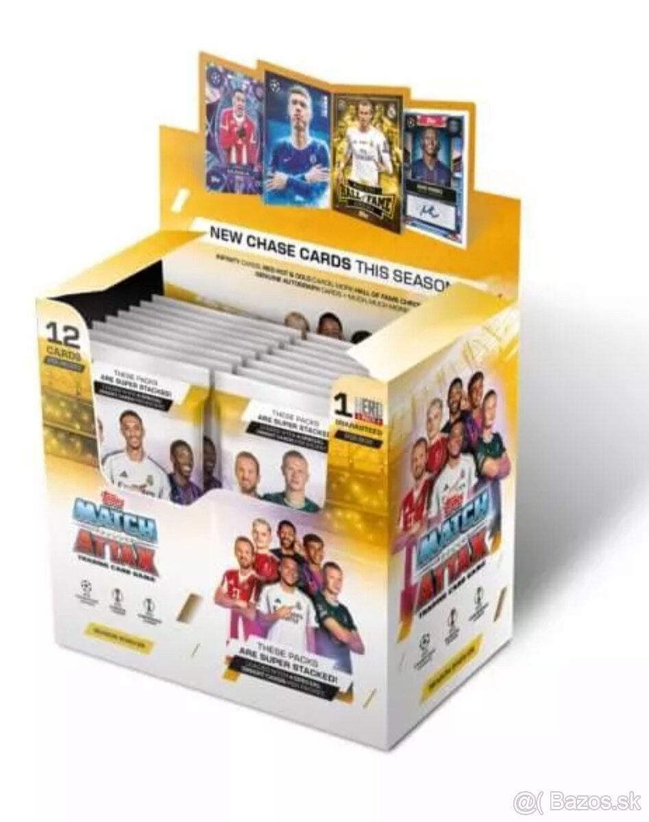2025-2026 Topps Match Attax Booster Box je krabička, ktorá obsahuje 32 balíčkov kariet. Každý balíček obsahuje 8 bežných kariet a 4 špeciálne vkladacie karty. Celkovo tak získate 384 kariet.