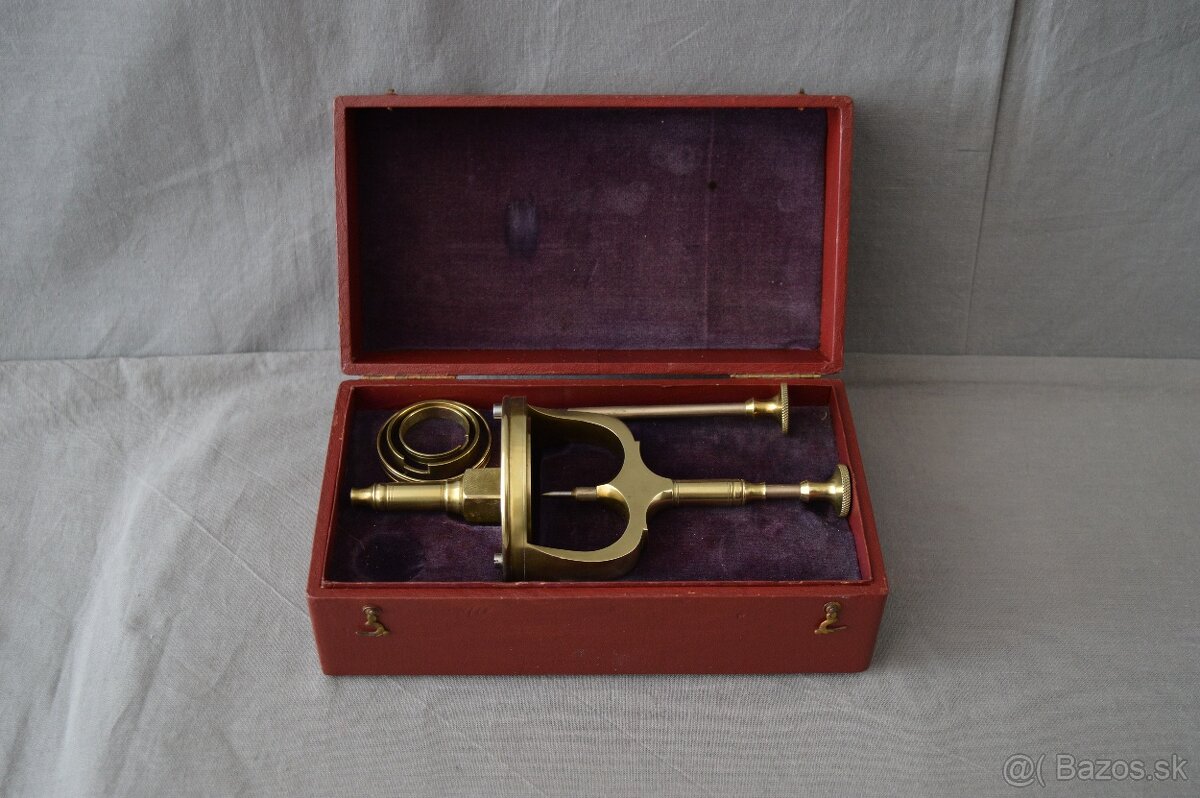 Zač. 20.st., mosadz, výška komplet 22cm, priemer 7cm, kazeta 20x11x10cm, Francúzsko