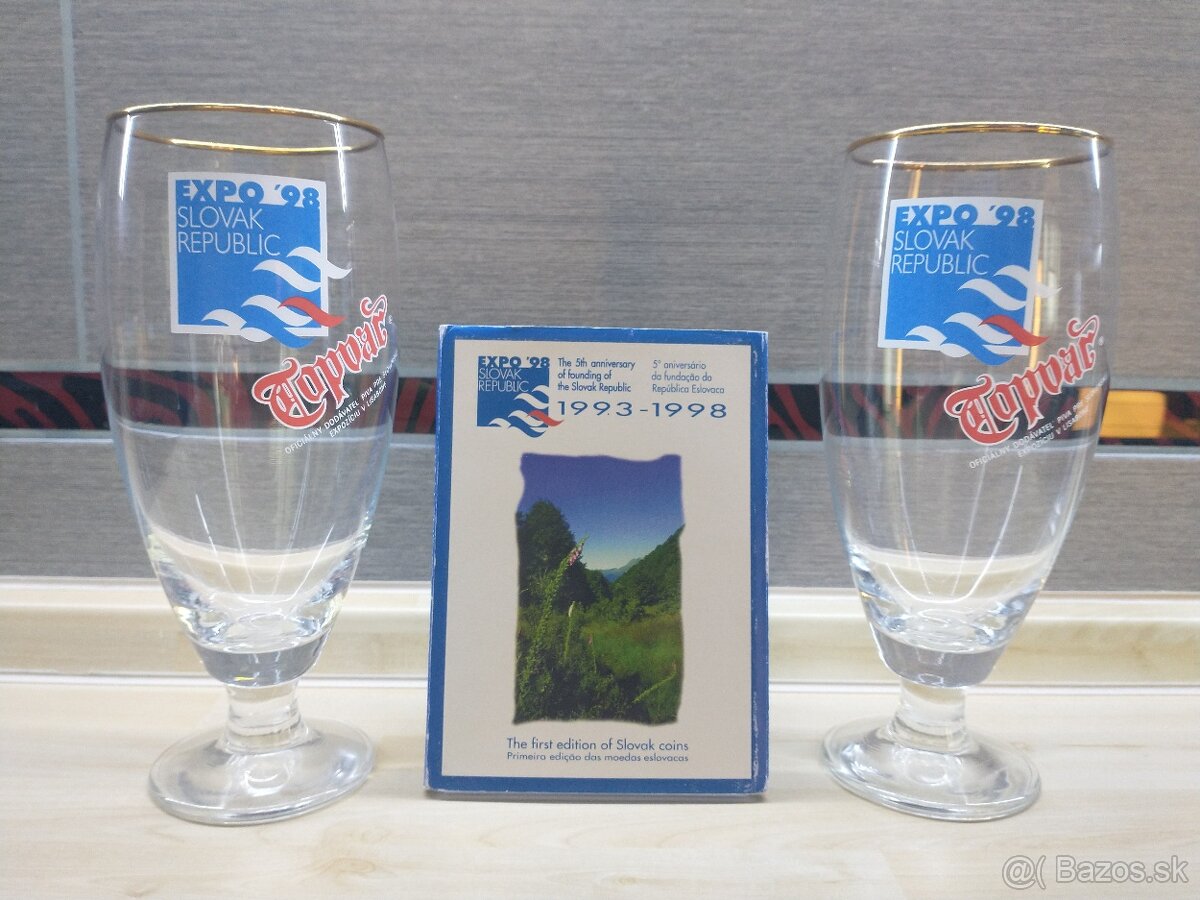 -sada mincí expo98 a 2xpoháre topvar expo98 -210€