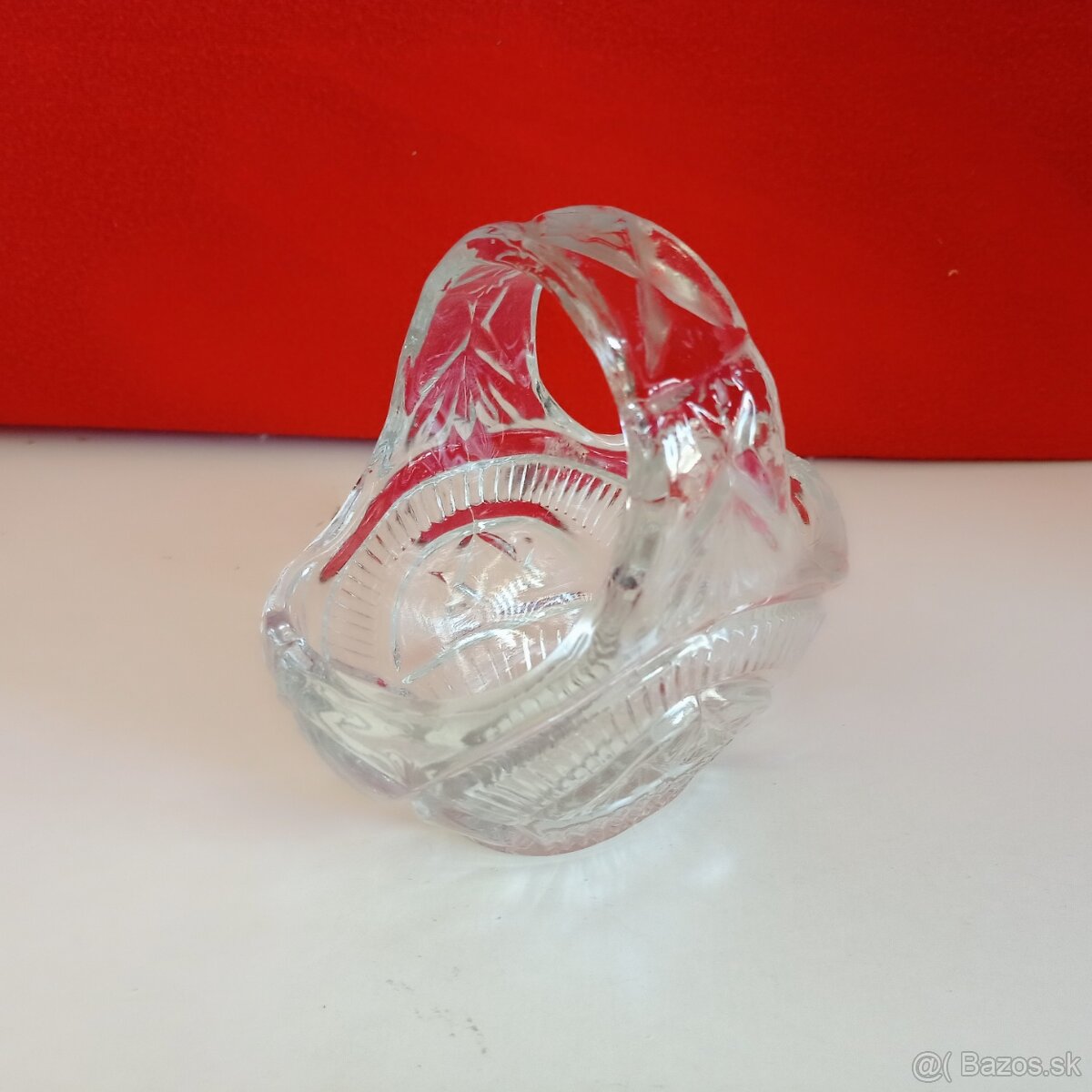 Vintage sklenený košík zo 70-tých rokov. Masívne liate sklo - bezvadný vitrinový stav. Vhodná na sladkosti, drobné predmety ( šperky) alebo voľnú dekoráciu priemer max cca 14 cm, výška max cca 14 cm. V BA osobne, alebo na dobierku ( +6€)