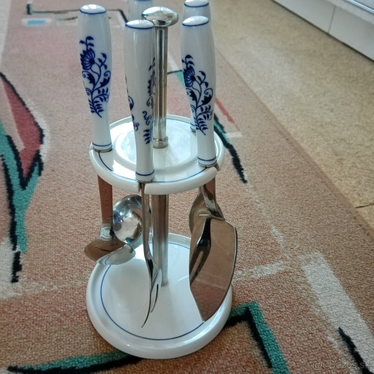 Predám krásny stojan s kuchynským náčiním Rostex, cibuliak, 5ks naberačka, lopatka na koláče, vidlička na mäso, lyžica na šalát a lyžica. Cena 90€. Súpravu 6x šálka s podšálkou dubí, ZWB 9cm a 14cm cena 90€.Donesiem TR, MT, PD, ZA. 0903 258 760, 0908 224 428