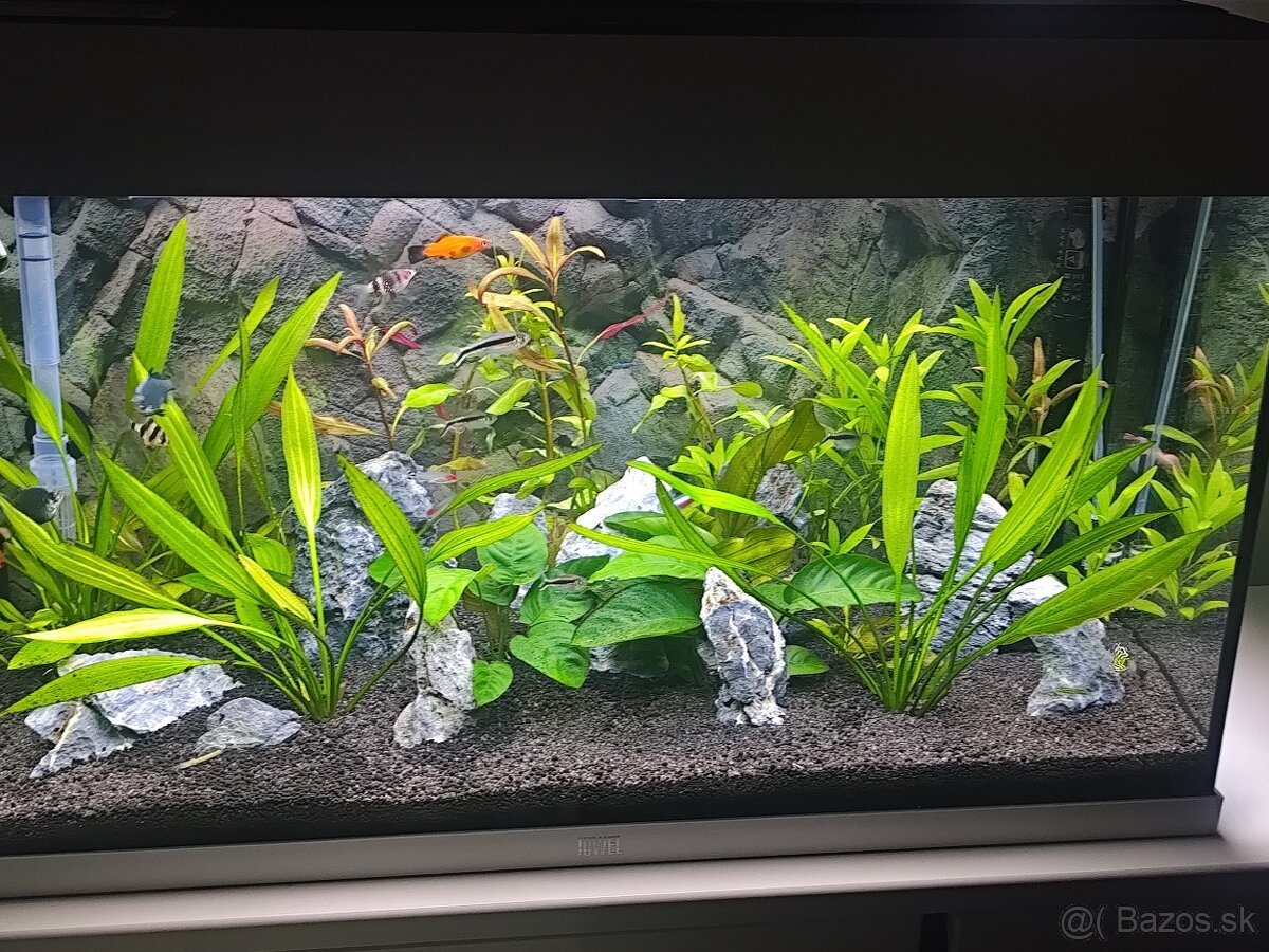 Predám akvárium juvel 125 aj s vybavou, dekoráciami aj s rybkami.K výbave patrí externý filter tetra700plus,co2 s dvomi tlakovymi fľašami,termostat, osvetlenie,dropchecker na co2+náplň aj co2 difúzor,k tomu ešte odkalovac a prípravky po výmene vody.