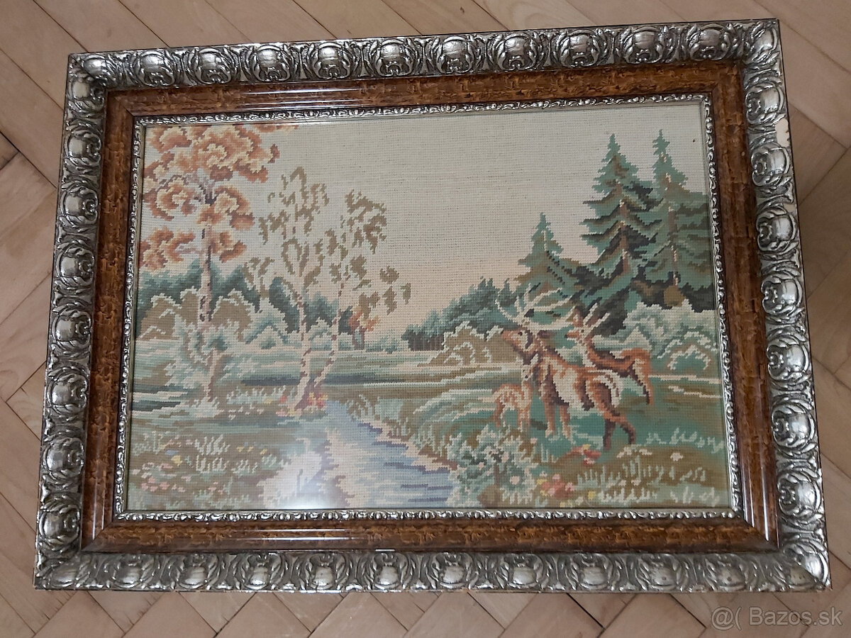 Ponúkam obrazy s peknými staršími rámami. Ide o plagáty a výšivky. Predpokladaná cena za kus 15 eur. Dohoda možná. Rozmery obrazov v poradí: 1-77x57cm, 2-34x26cm, 3-21x45cm