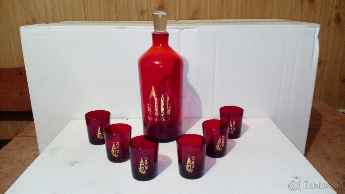 Predám karafu s pohárikmi s tematikou Bojnice. Hrdlo flašky trocha odlupené. Cena 15€
