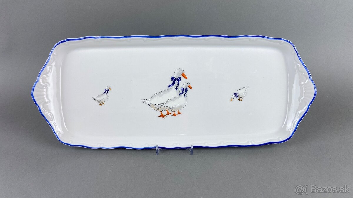 Niekoľko kusov podnosov s motívom husí na predaj, modrá linka, Moritz Zdekauer